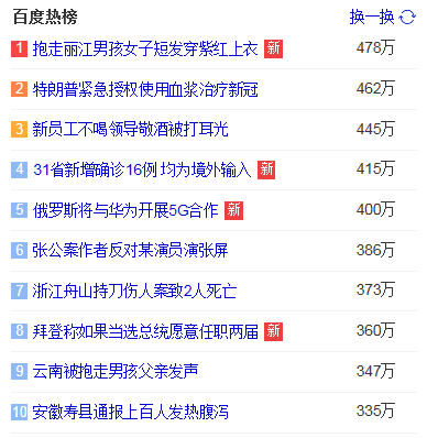 2.特朗普緊急授權(quán)使用血漿治療新冠 獵頭熱點(diǎn)熱度462萬