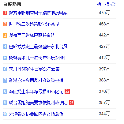 1.警方重新調(diào)查男子踹傷猥褻男案 獵頭熱點(diǎn)熱度475萬(wàn)
