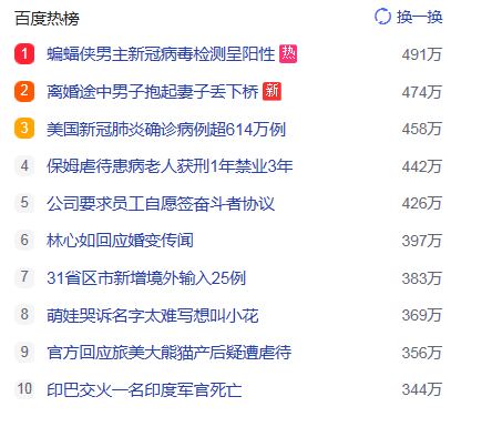 3.美國新冠肺炎確診病例超614萬例 獵頭熱點熱度458萬