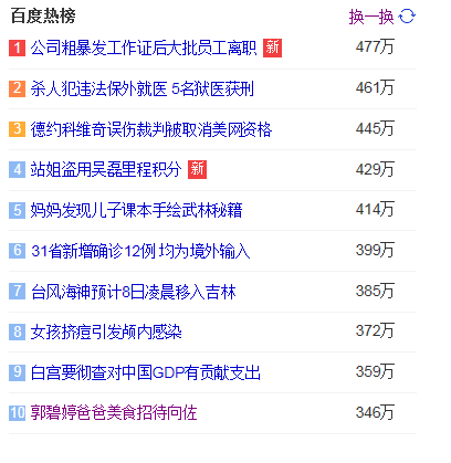 9.白宮要徹查對中國GDP有貢獻支出  獵頭熱點熱度359萬