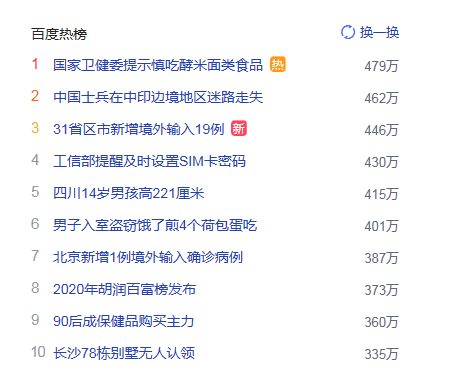 1.國家衛(wèi)健委提示慎吃酵米面類食品 獵頭熱度熱點479萬