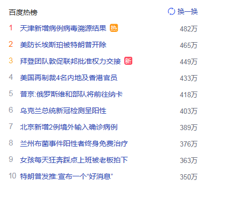 1.天津新增病例病毒溯源結(jié)果 獵頭熱度熱點(diǎn)482萬(wàn)