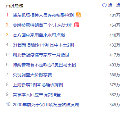 1. 浦東機場相關(guān)人員連夜核酸檢測  獵頭熱度熱點481萬