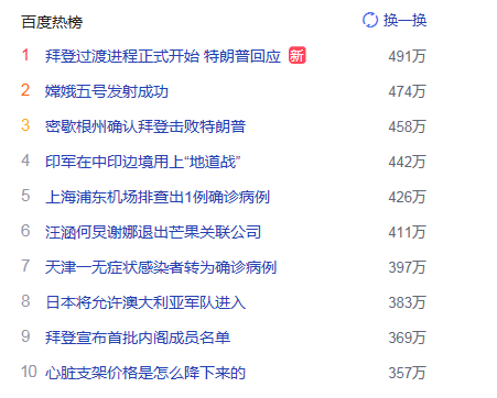 1. 拜登過(guò)渡進(jìn)程正式開始 特朗普回應(yīng) 獵頭熱度熱點(diǎn)491萬(wàn)