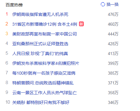 1. 伊朗高級(jí)指揮官遭無(wú)人機(jī)殺死 獵頭熱度熱點(diǎn)476萬(wàn)