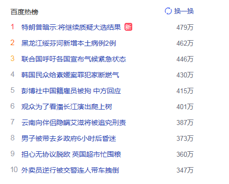 1. 特朗普暗示:將繼續(xù)質(zhì)疑大選結(jié)果 獵頭熱度熱點(diǎn)479萬