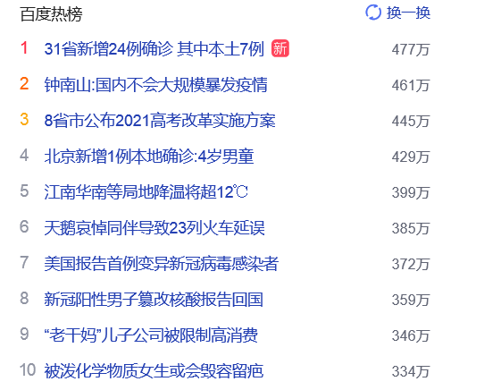 1. 31省新增24例確診 其中本土7例 獵頭熱度熱點(diǎn)477萬(wàn)